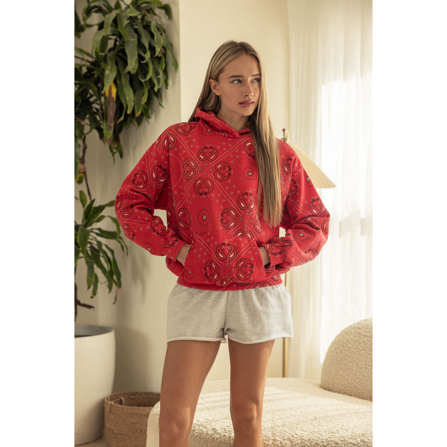 This bandana-print hoodie brings a bold, statement feel to a classic everyday layer. Designed with a relaxed fit and cozy construction, it features an all-over bandana pattern that adds personality while keeping things easy and wearable. Finished with a kangaroo pocket and hood, it’s a comfortable go-to for cooler days and casual styling.