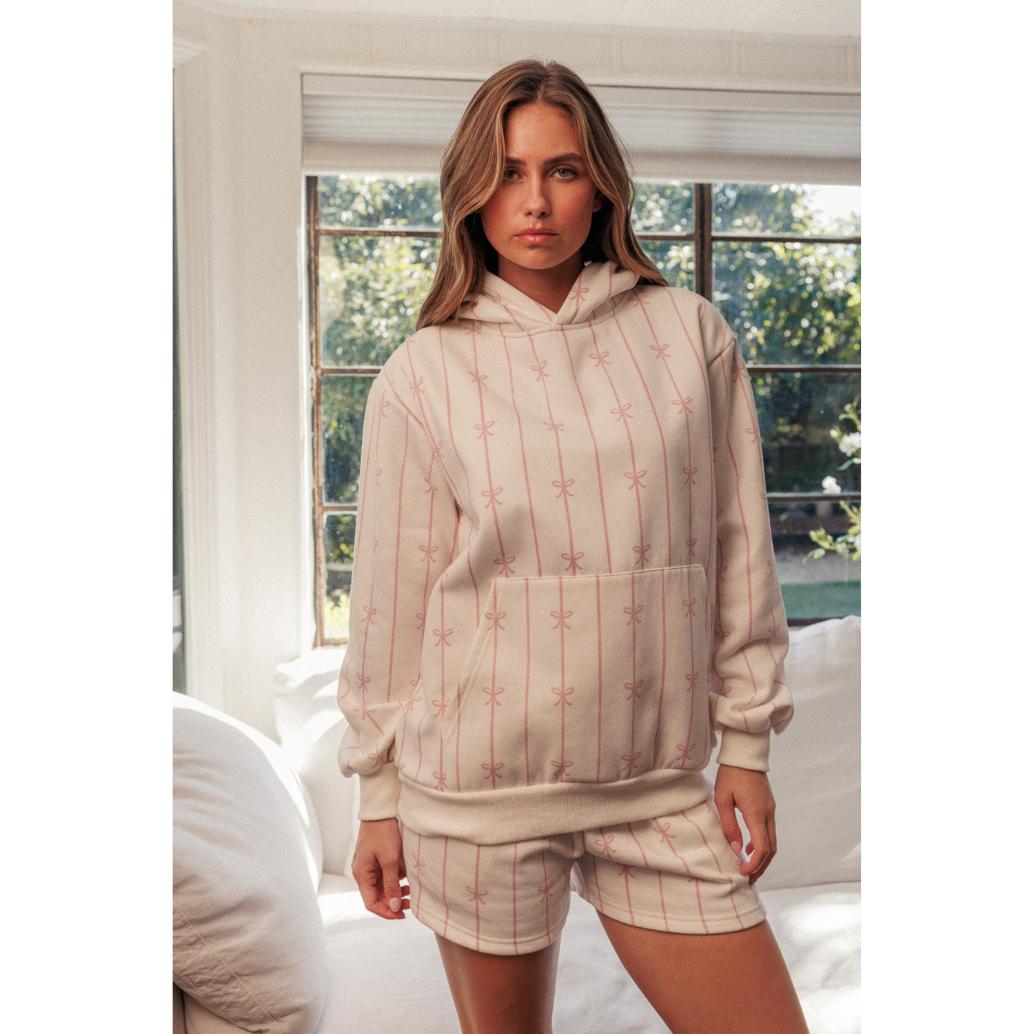 These bow-print shorts are perfect for relaxed, cozy days. Ideal for lounging at home, slow mornings, or casual coffee runs, they’re also great for travel days or low-key weekend plans. The soft feel and easy fit make them a comfortable go-to for staying in or stepping out with an effortlessly cute look.