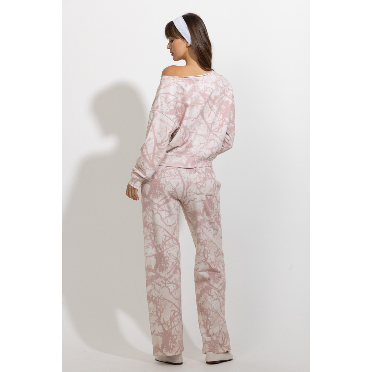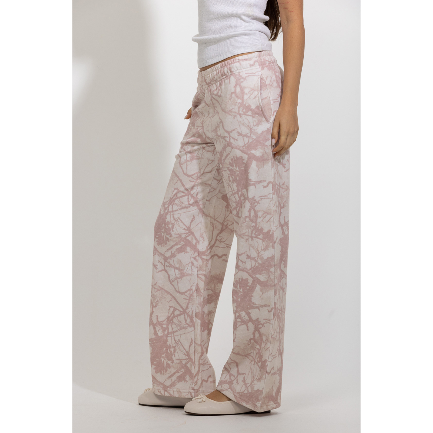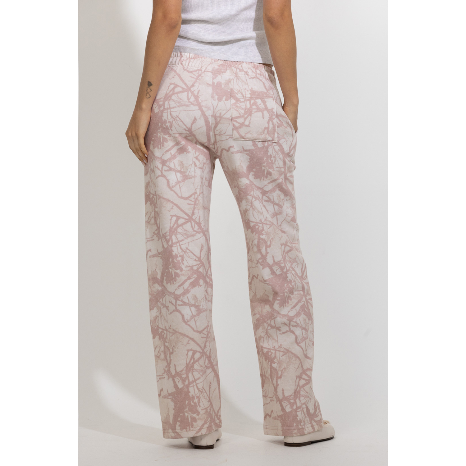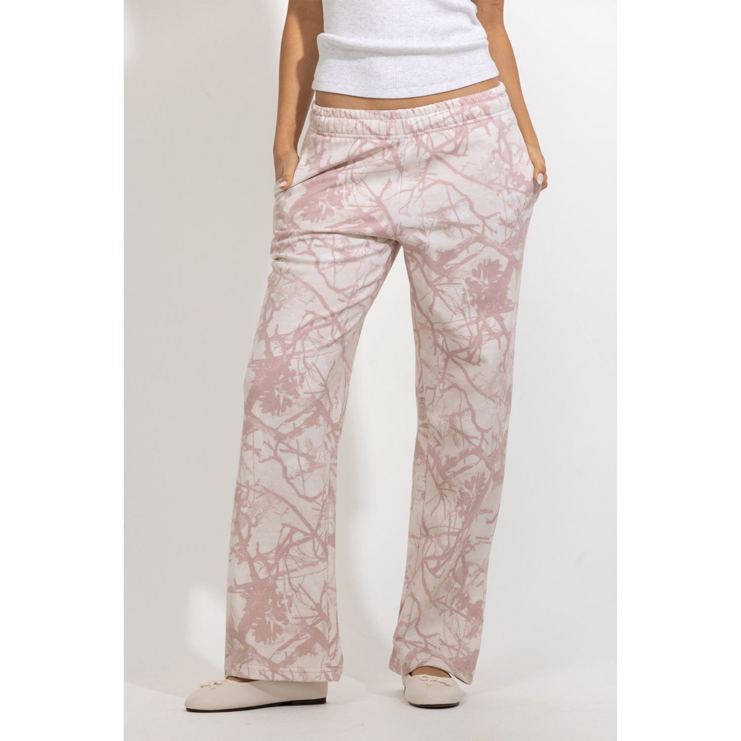 These tree-camo printed lounge pants combine relaxed comfort with a soft, feminine edge. Designed with a comfortable elastic waistband and an easy straight-leg silhouette, they offer a laid-back fit that moves effortlessly with you. The subtle tree-camo pattern adds a nature-inspired touch, while the soft color palette keeps the look light and feminine. Perfect for pairing with matching tops or simple basics, these pants bring effortless comfort to everyday wear.
