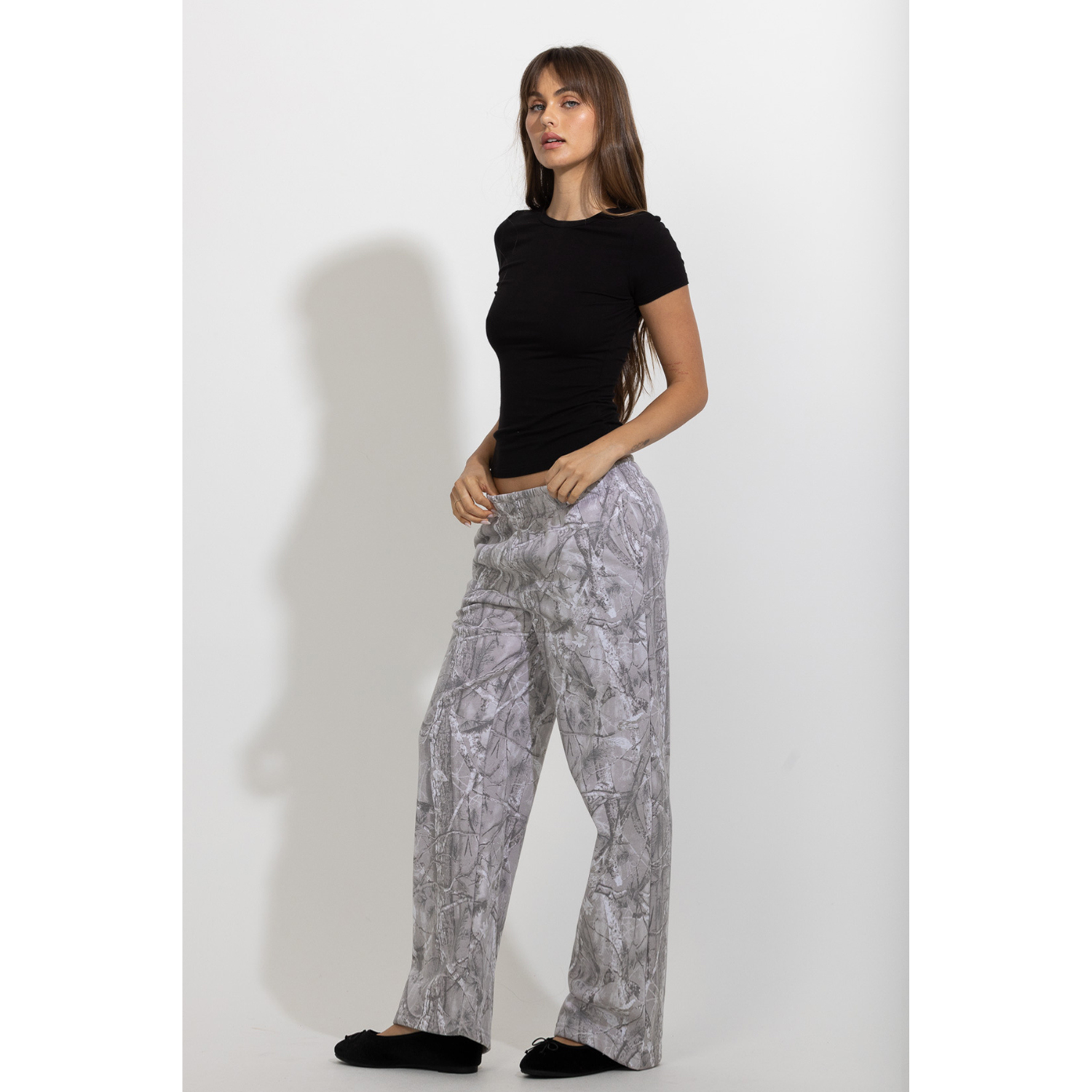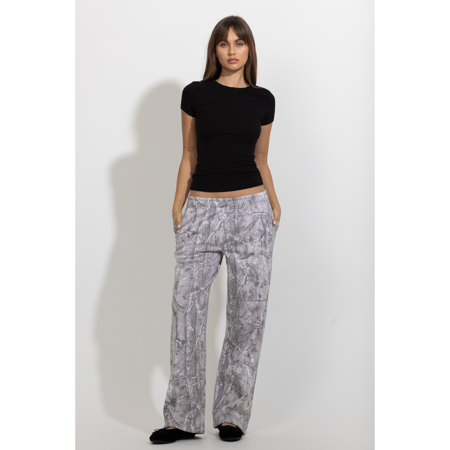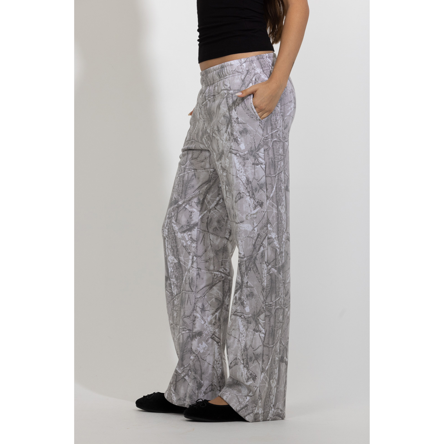 These tree-camo printed lounge pants offer an easy balance of comfort and style. Designed with a relaxed straight-leg silhouette and an elastic waistband, they provide a comfortable fit for everyday wear. The all-over tree-camo pattern adds a subtle outdoors-inspired feel while maintaining a clean, modern look. Soft and versatile, they pair effortlessly with simple tops, hoodies, or matching pieces for a relaxed off-duty outfit.