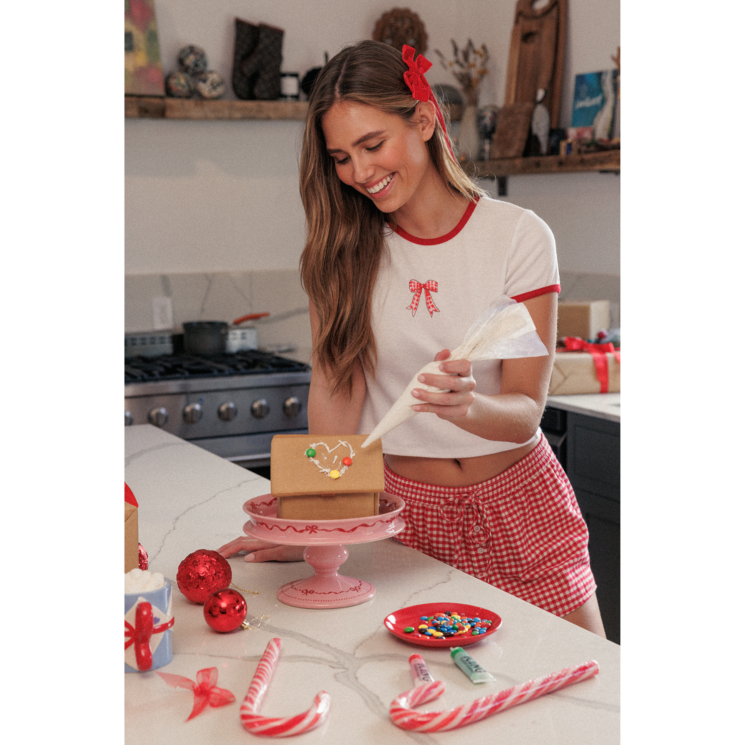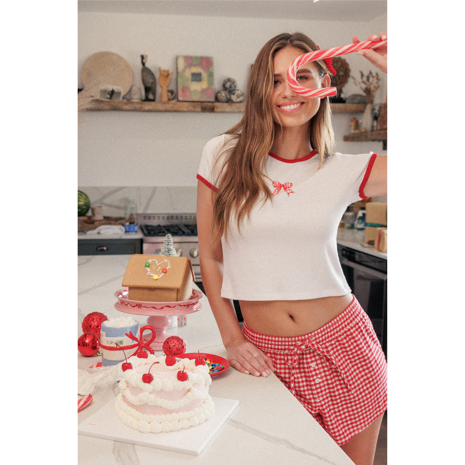 - Cropped ringer tee with contrast trim for a retro-inspired look