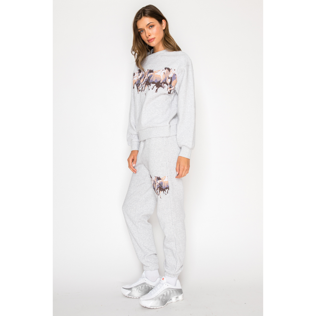 - Matching set with our 'Horse Printed Fleece Jogger-H.chrome'
