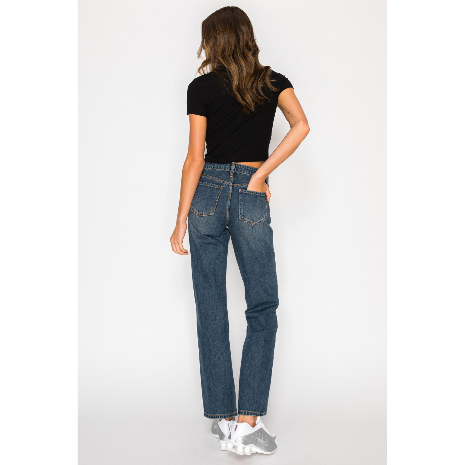 Leopard Heart Patched Low Rise Baggy Jeans - Dark Wash