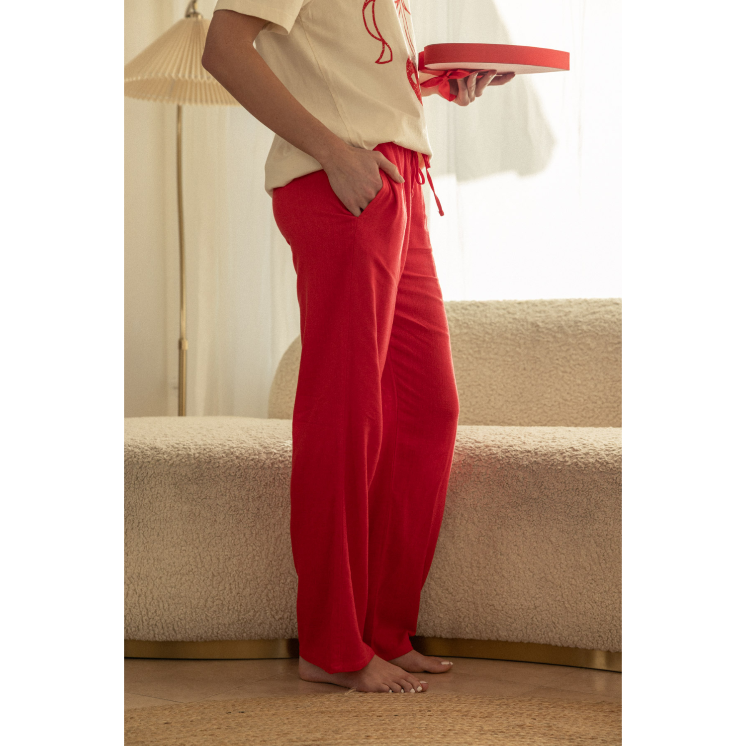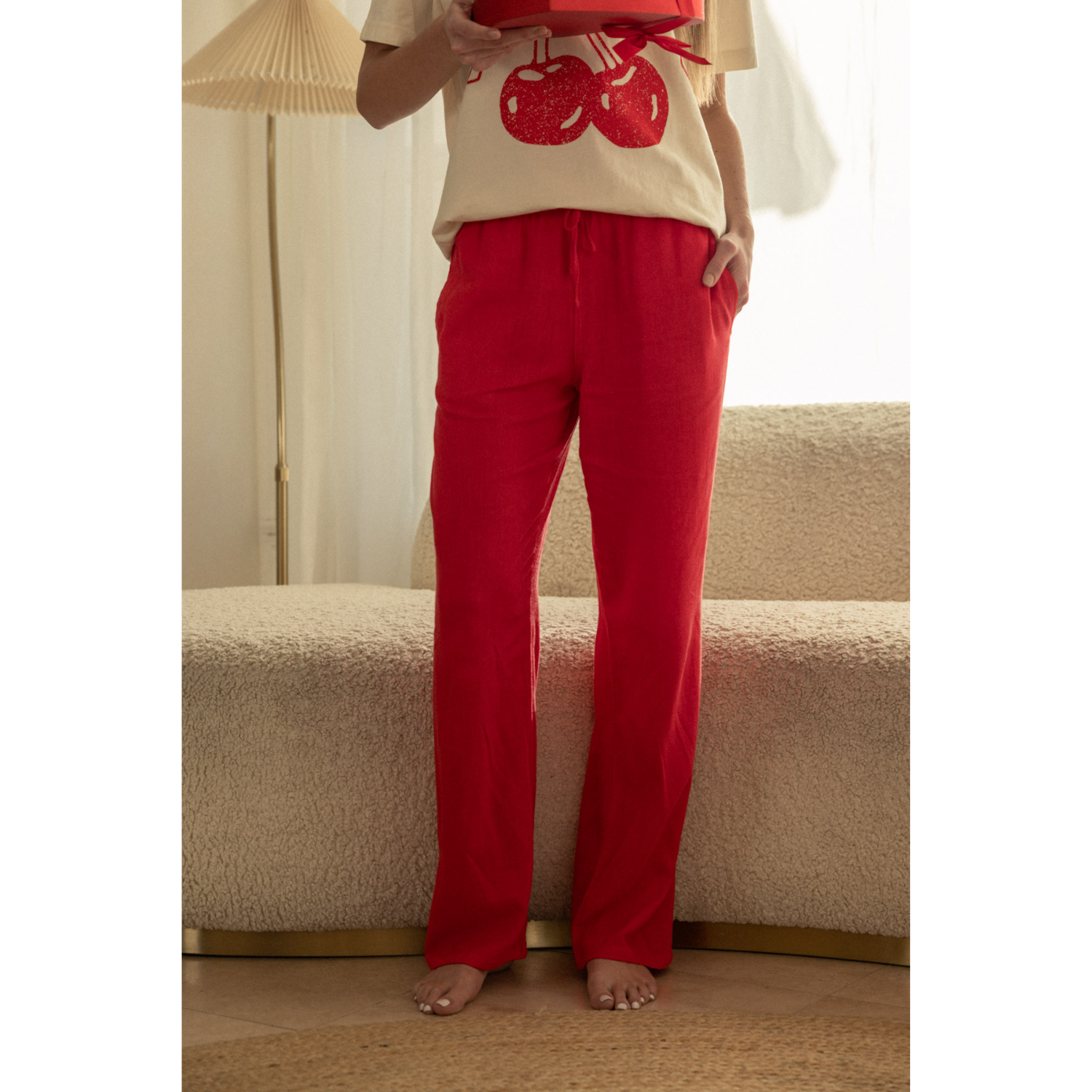 Linen Pull On Pants - Tomato Red