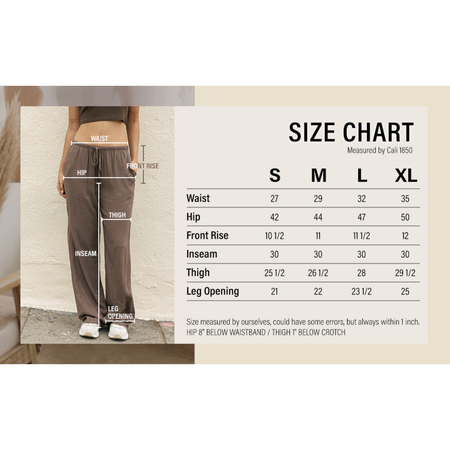 - Elastic waist with self drawstring