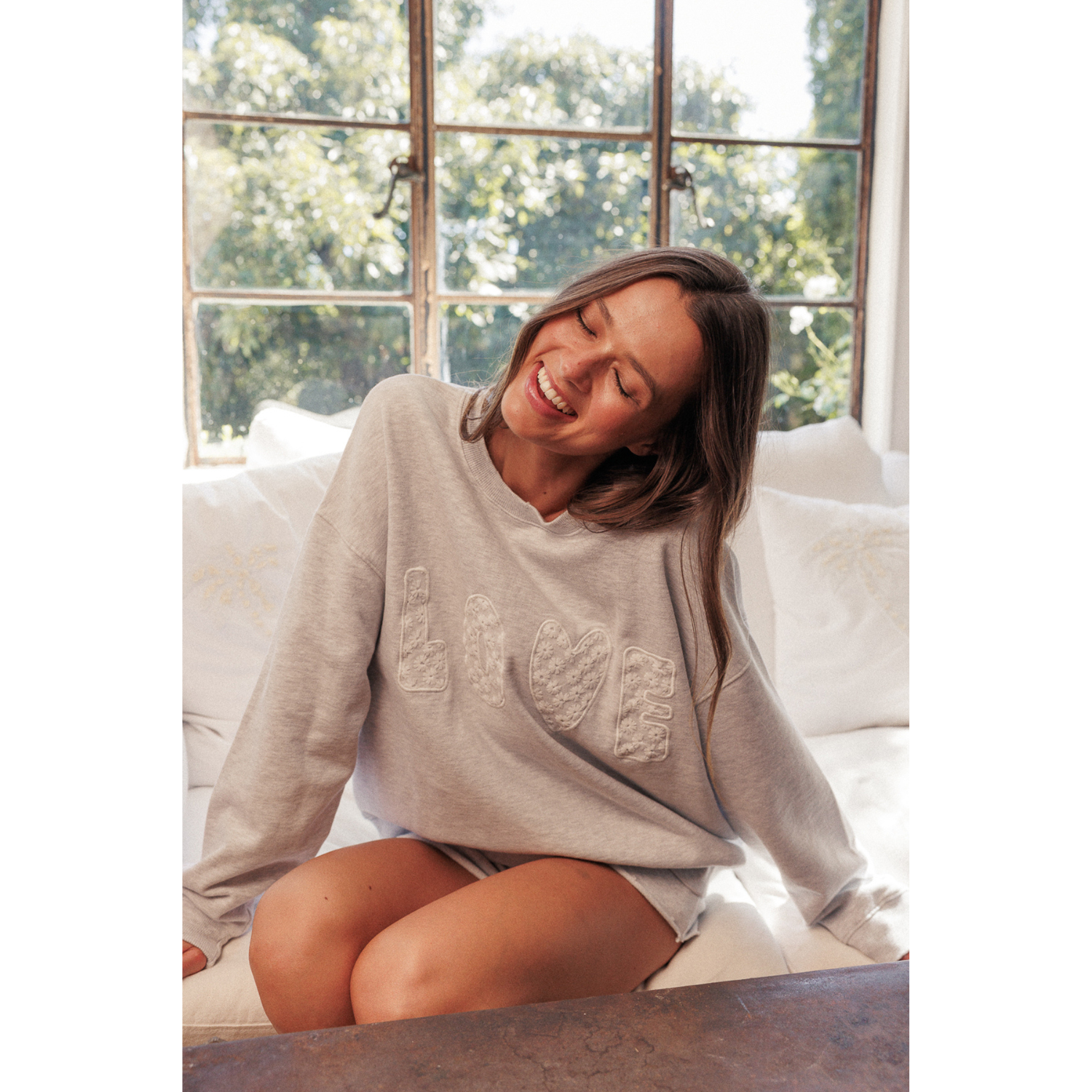 Love Lace Patched Crewneck Sweatshirt - Heather Chrome