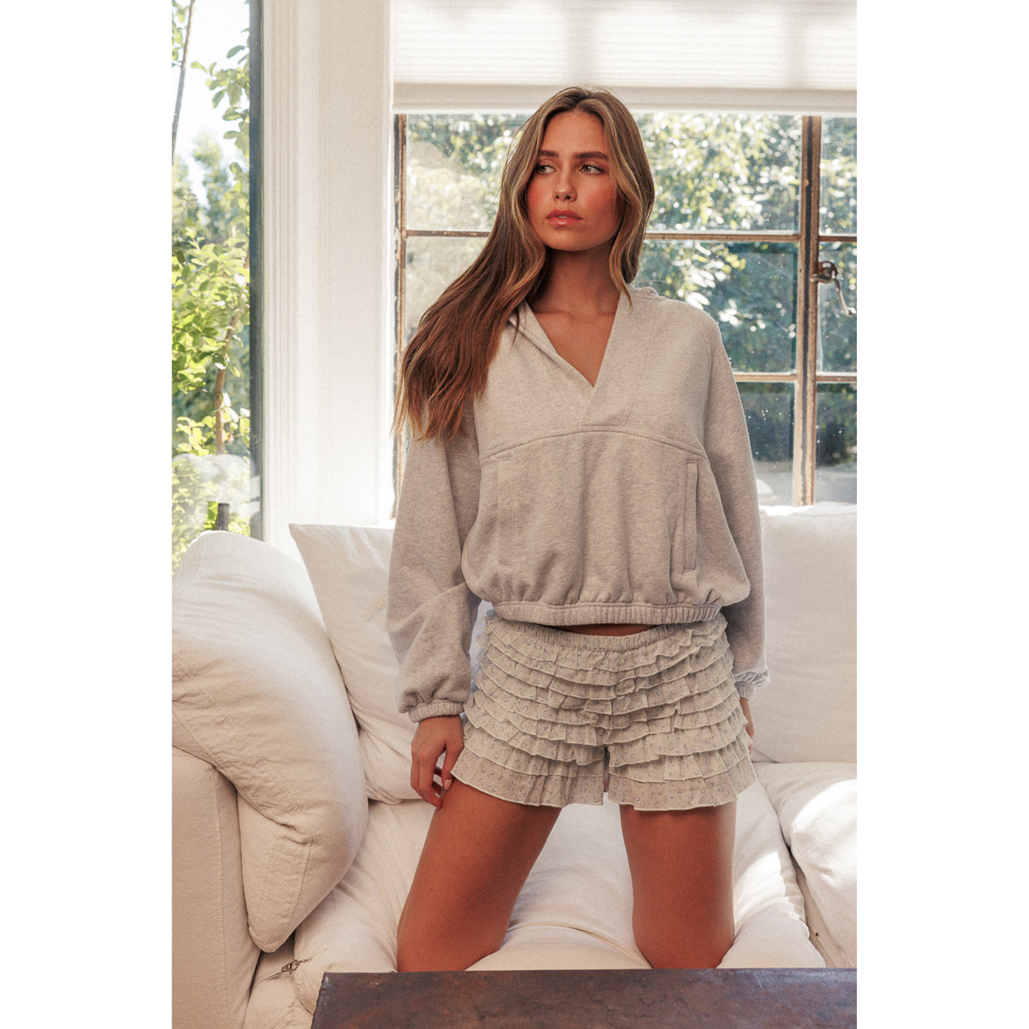 Peach Brushed Fleece Throwback V-Neck Hoodie - Heather Grey