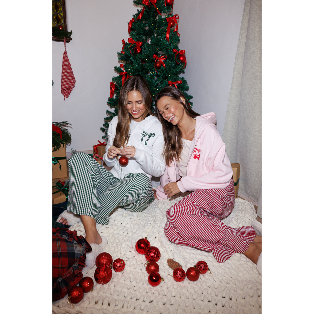 Plaid Bow Patched Cropped Zip Up Hoodie - Snow White