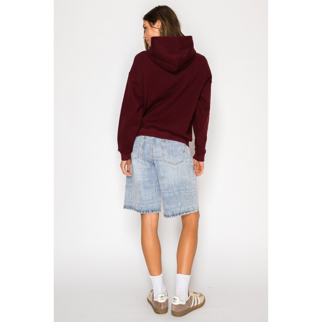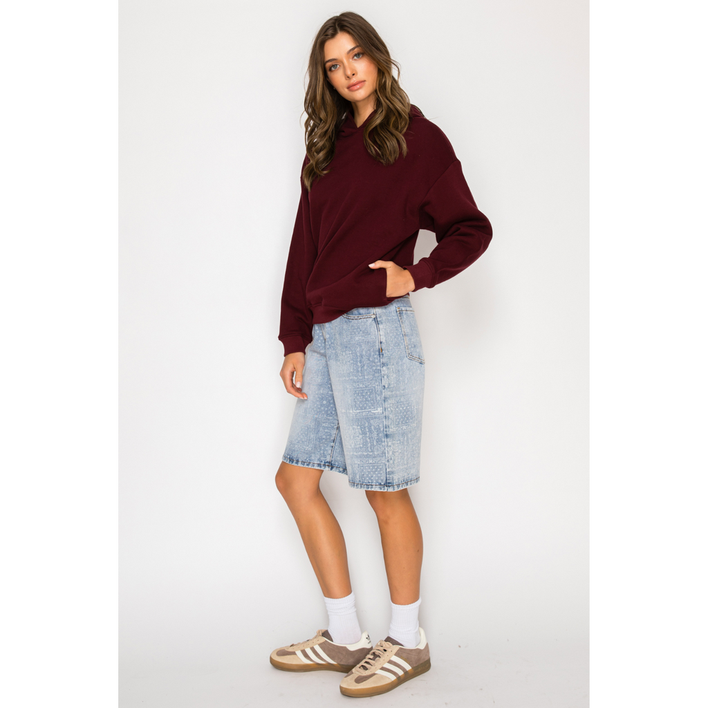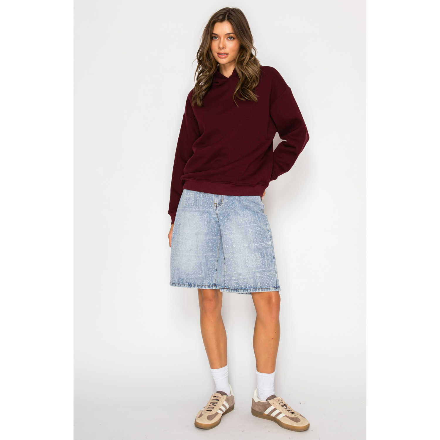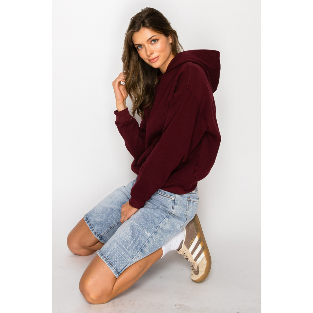 Soft Fleece Oversized Hoodie Sweat Shirt With Side Pockets - Burgundy
