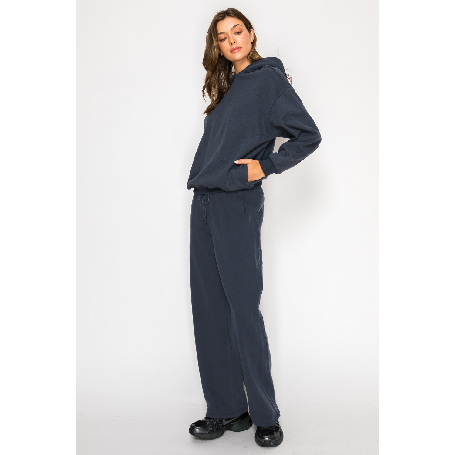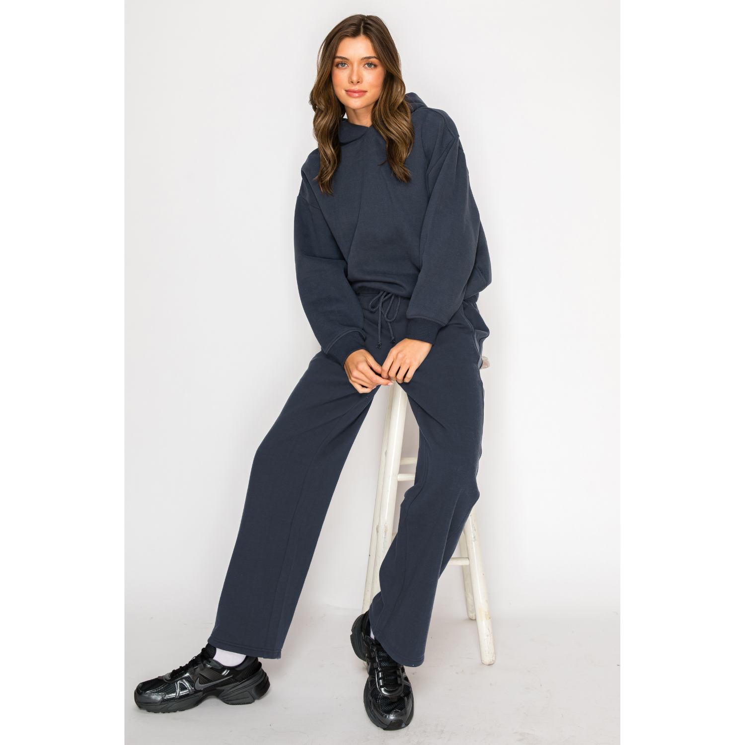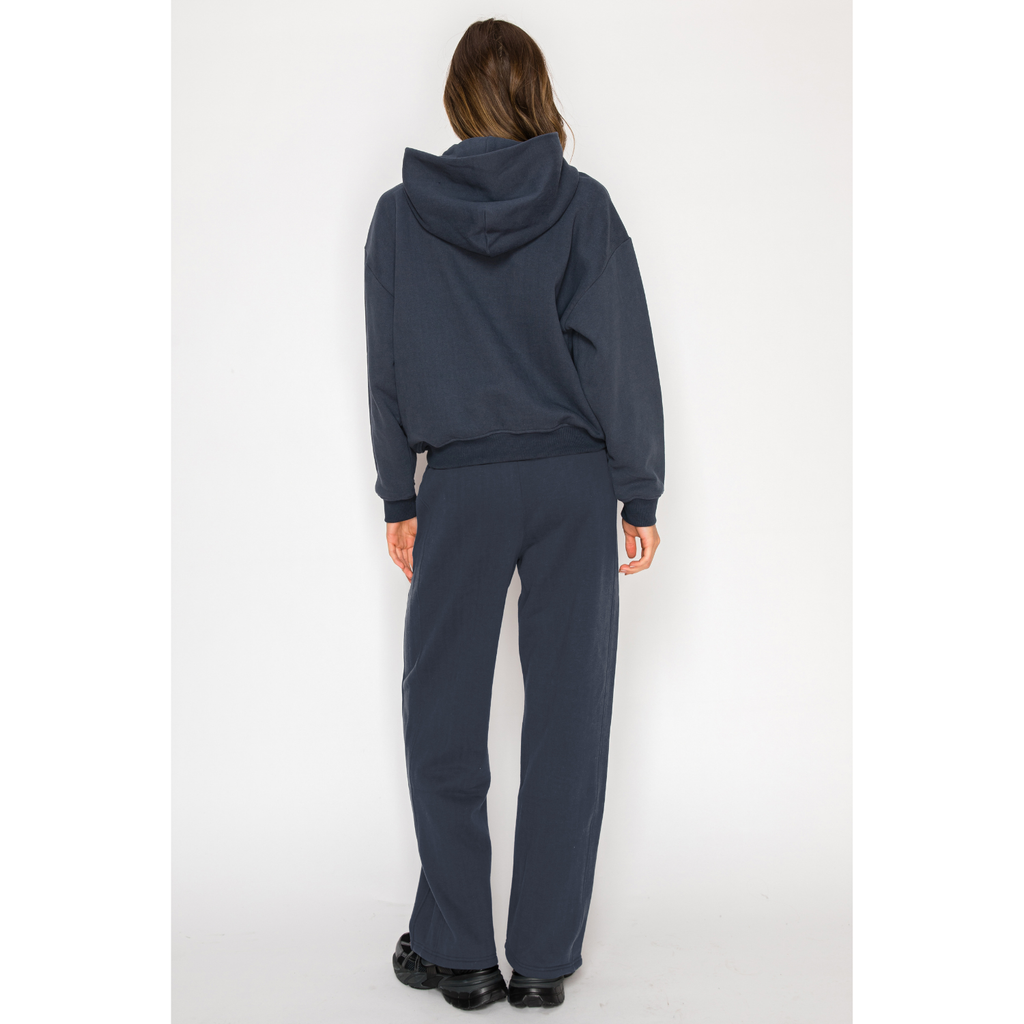 Soft Fleece Wide Leg Sweat Pants - Navy
