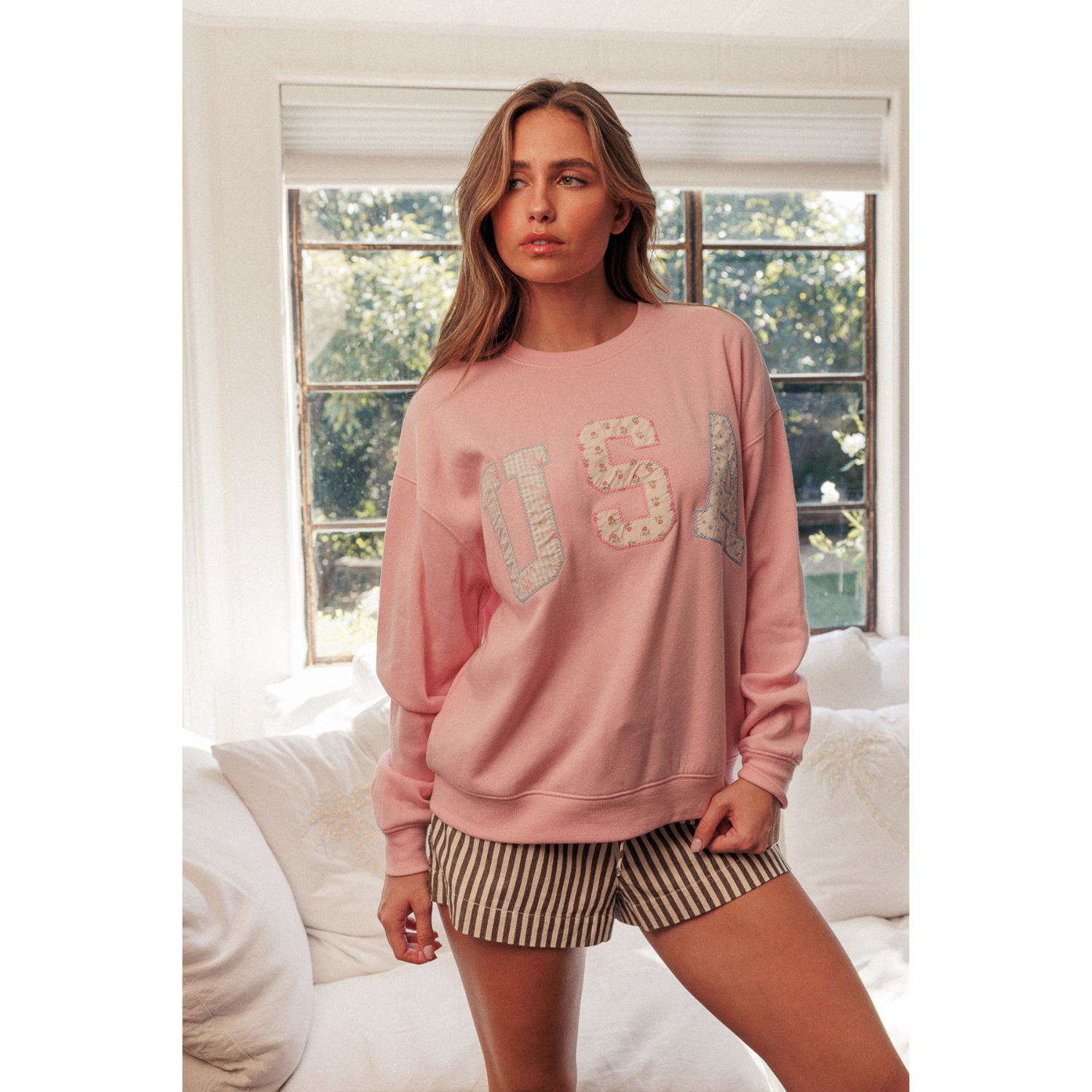 USA Floral Patched Crewneck Sweatshirt - Ballerina