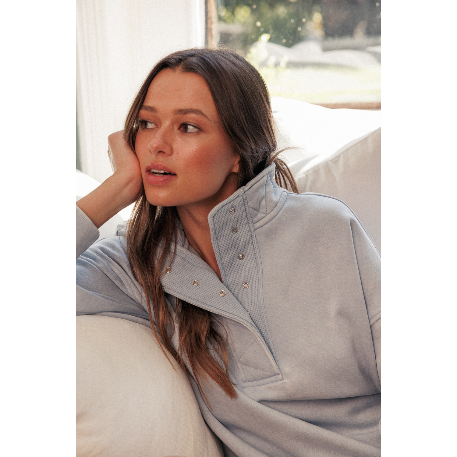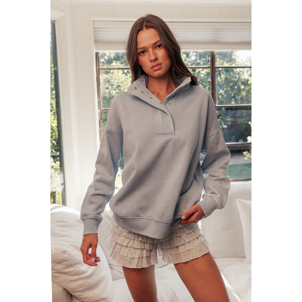 Vintage Washed Snap Buttoned Sweatshirt - Washed Cloud Blue