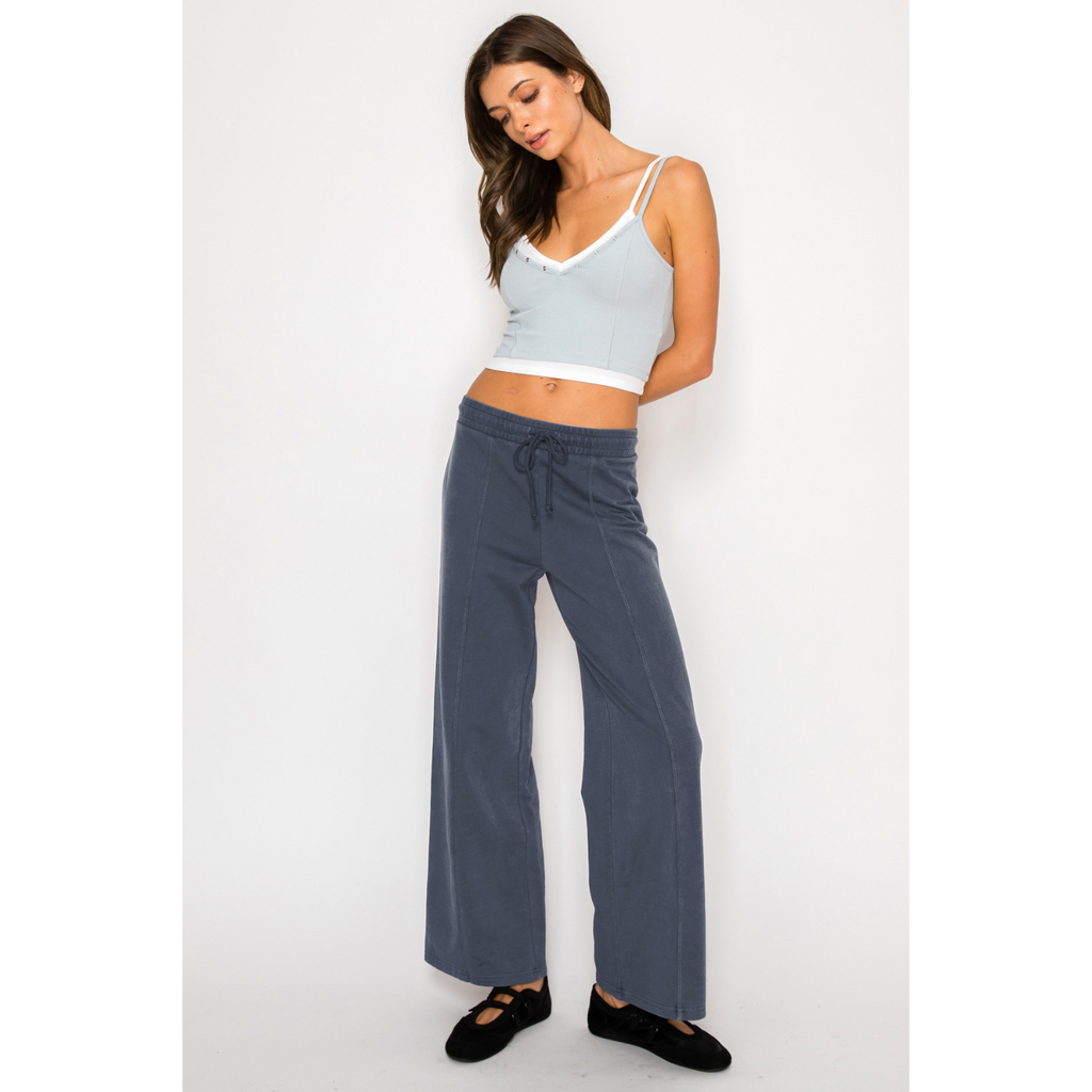 These wide-leg sweatpants are designed for movement and built for lounging. They’re garment-dyed for that just-right vintage fade and feature an adjustable drawstring waistband for a flexible fit. The minimal front-seam stitching adds structure, a smart detail that makes them feel just a little more styled, whether you’re staying in or heading out.