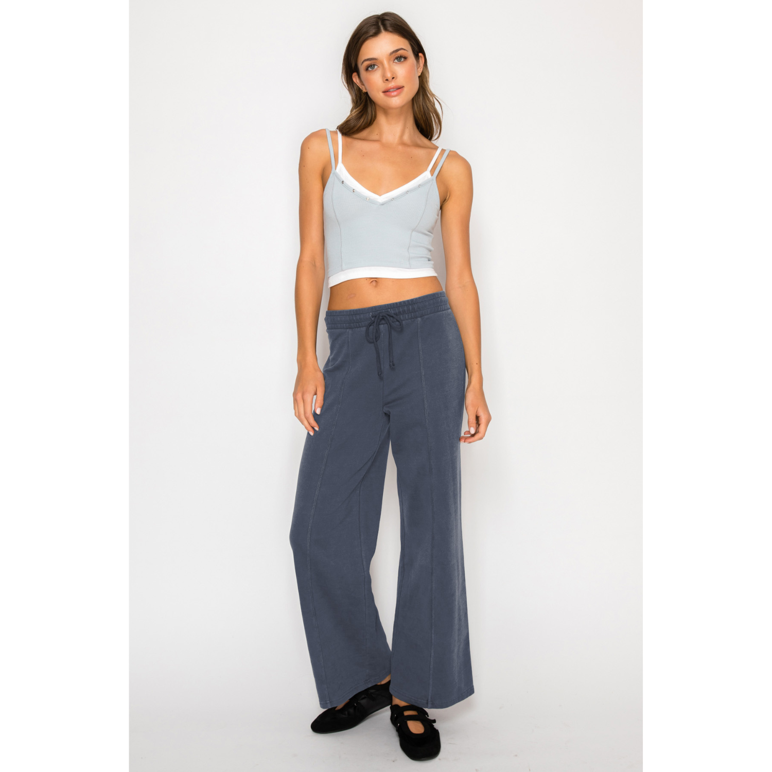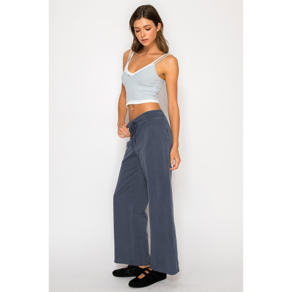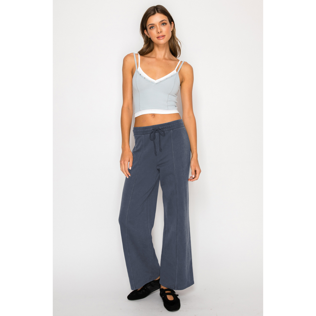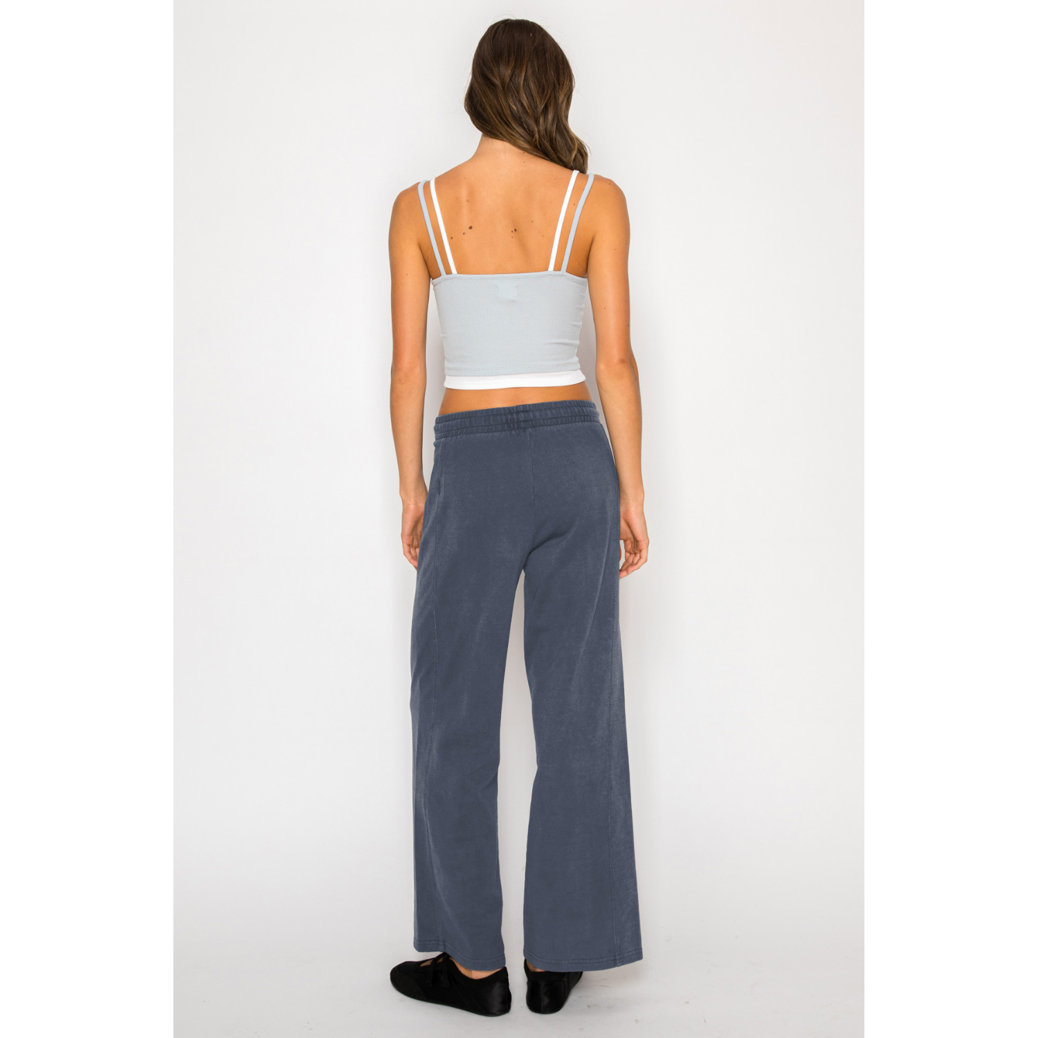 Vintage Washing Wide Leg Sweat Pants - Navy