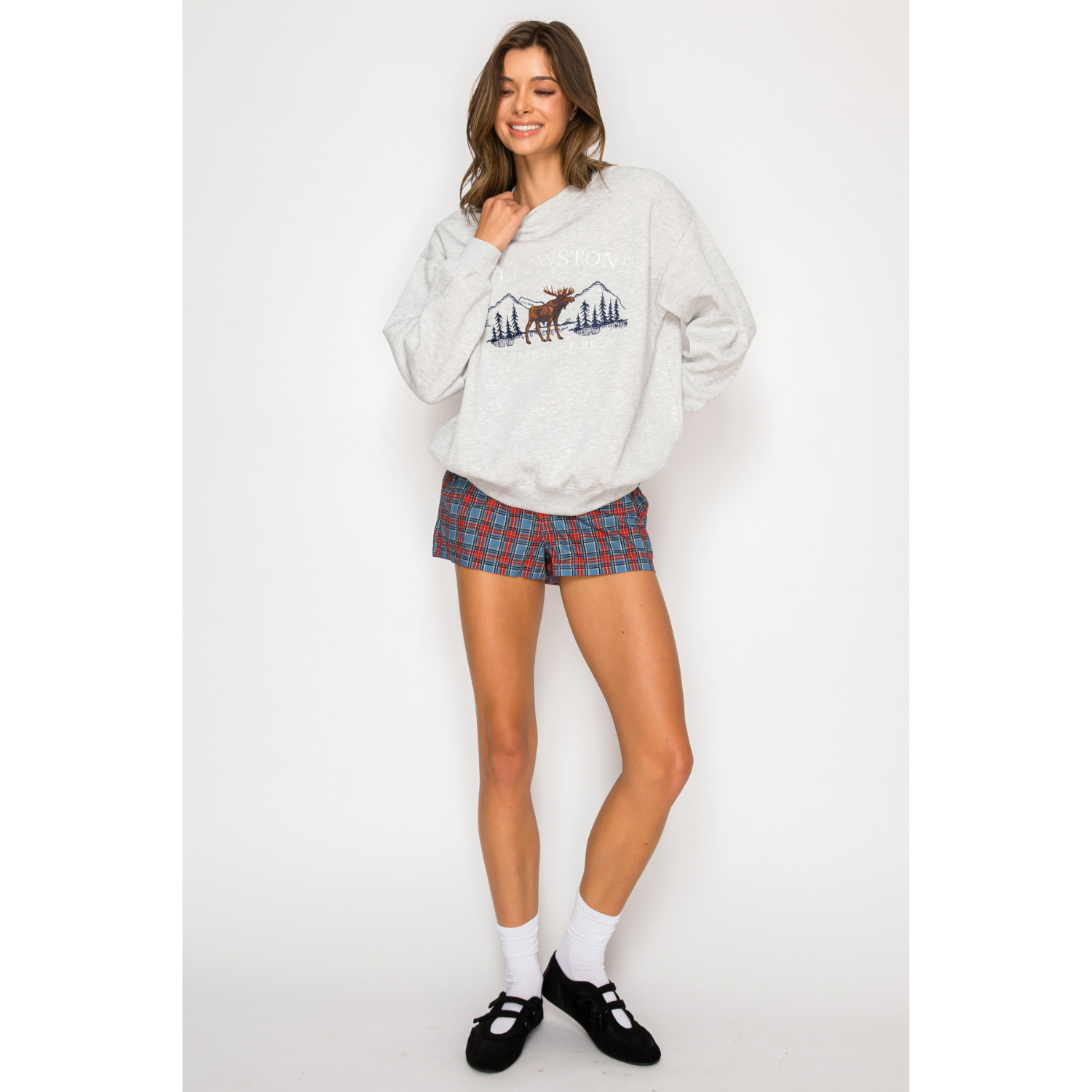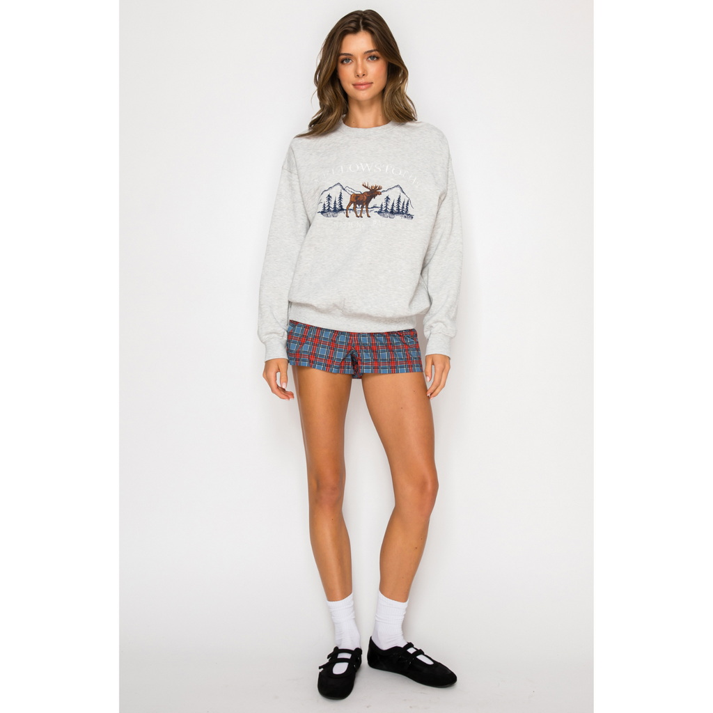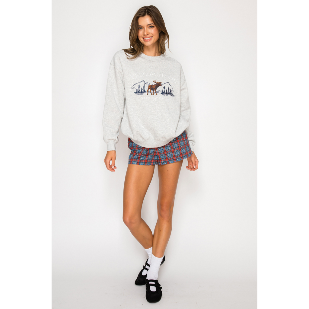 'Yellowstone' Embroidery Fleece Oversized Sweatshirt